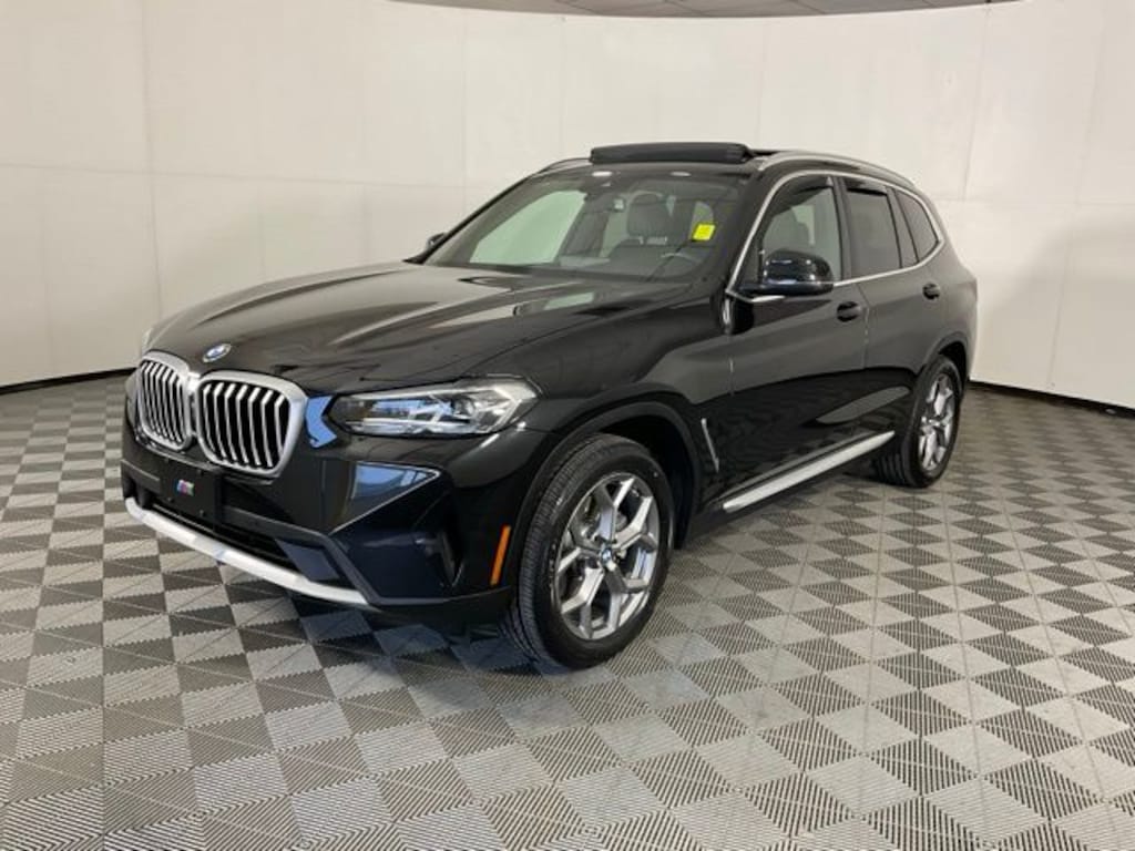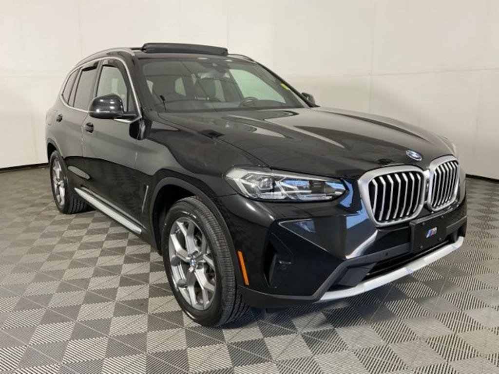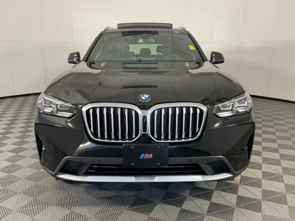 BMW Certified. Black Sapphire Metallic 2023 BMW X3 xDrive30i AWD 8-Speed Automatic Sport 2.0L I4 TwinPower Turbo, Premium Package, Connected Package Pro, Driver Lumbar Support, Exterior Parking Camera Rear, Head-Up Display, Heated Front Seats, Heated Steering Wheel, Live Cockpit Pro w/Navigation, Memory seat, Navigation, Panoramic Moonroof, Power Liftgate, Wheels: 19" x 7.5" Y-Spoke (Style 693), WiFi Hotspot. CARFAX One-Owner. Clean CARFAX.